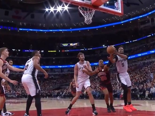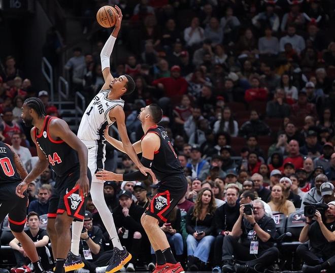 易边再战,武切维奇面对空篮离谱上偏,随后露出尴尬的神色。文班亚马假动作晃飞防守人之后直杀内线,起飞撞倒杰伦-史密斯,本场第二次被造进攻犯规。福克斯传球又出现失误,已经出现6次失误(全队14次),史密斯和特雷-琼斯连续跳投命中,赫尔特大空位接球三分再投进,三节打完,马刺89-98落后公牛9分。