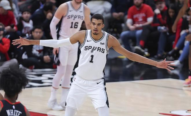 第四节决战,布泽利斯和赫尔特连中三分,公牛将分差拉开至13分。科纳特弧顶发牌给底角空位的文班亚马,后者三分稳稳命中,接着文班背打杰伦-史密斯,炸球转身接后仰干拔中投颠进篮筐,还有加罚,文班亚马连得10分,带队打出一波10-0将分差缩小至3分。赫瑞特弧顶三分再中,及时止血,文班亚马关键时刻连中两记三分,反超比分,最终,马刺客场121-117击败公牛,拒绝逆转,豪取3连胜!
