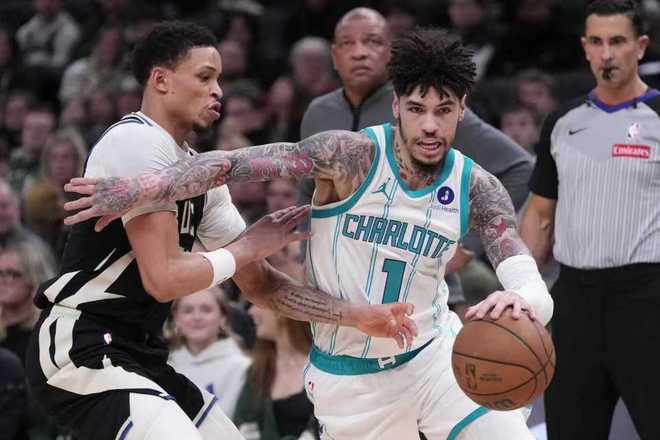 进入第四节比赛,雄鹿率先追到92-93仅差1分,黄蜂一波6-0攻势扩大7分优势,雄鹿内外开花追到102-102。三球三分开火率队扩大4分优势,小波特暴扣,三球两罚全中,格林上篮追分。克尼佩尔补扣,字母哥2+1追到差1分,黄蜂连续被犯规4罚3中扩大4分优势。字母哥空接得分,罗林斯关键三分反超1分,布里奇斯上篮命中,库兹马压哨三分命中反超2分,布里奇斯空接2+1夺回领先优势,库兹马6犯毕业。字母哥空接暴扣准绝杀,米勒压哨上篮不中,最终雄鹿险胜黄蜂。